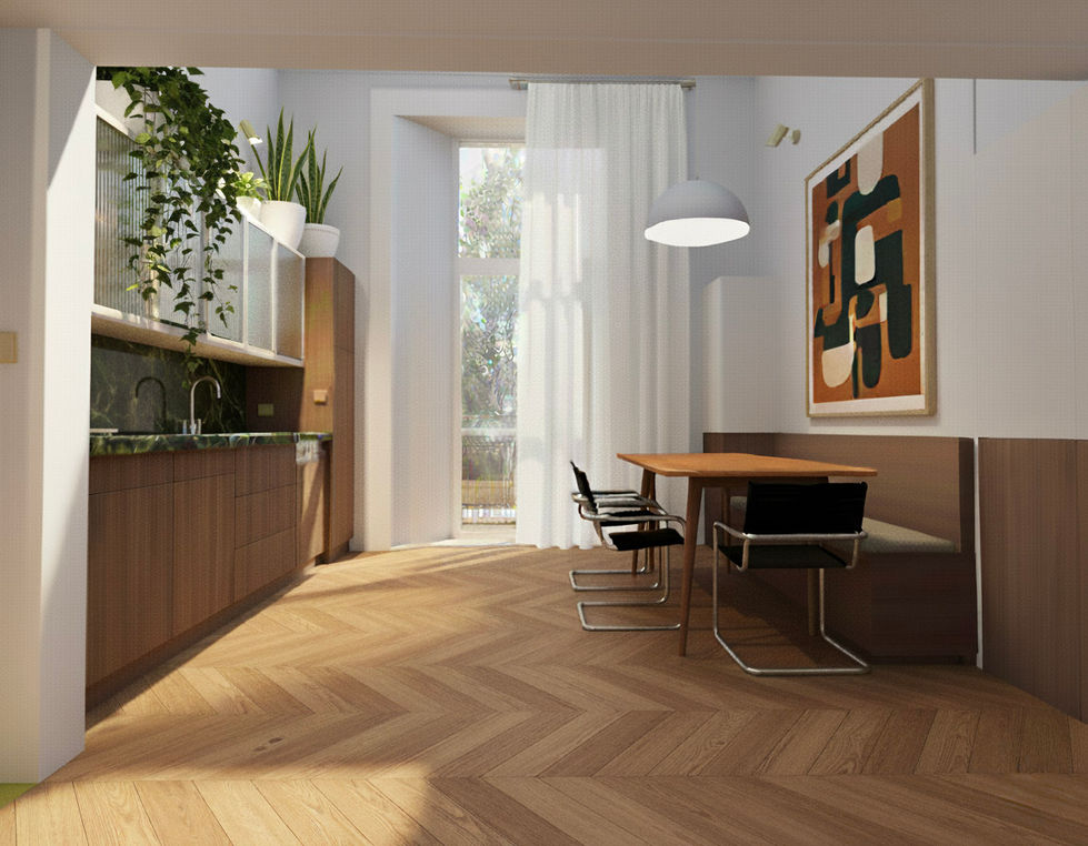 Rethinking a Grade II listed Victorian flat in West London, we collaborated with Polysmiths to sensitively transform the property while honouring its historic character. A new timber-framed, glazed mezzanine creates a light-filled additional living space, carefully inserted to complement the original architecture.